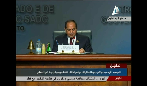 وجه الرئيس عبدالفتاح السيسي الشكر لرئيس زمبابوي روبرت موجابي على نجاحه فى قياده التكتلات الثلاثة كما رحب بكافة الحضور فى شرم الشيخ ، خلال إلقاء كلمته اليوم الأربعاء بالجلسة الافتتاحية لأعمال قمة دول التكتلات الاقتصادية الأفريقية الثلاثة (الكوميسا والسادك وتجمع شرق أفريقيا) فى مدينة شرم الشيخ بمشاركة زعماء ورؤساء حكومات في 25 دولة أفريقية الأعضاء فى التكتلات الثلاثة.
