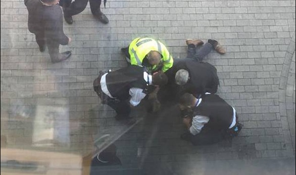 وتجمع أفراد الأمن البريطانى حوله وأسقطوه، لتحتجزه قوات الشرطة بعدها، كما تم فحص حقبيبتين كانتا موجودين بمكان الواقعة، بحسب الموقع الإلكترونى لصحيفة "اندبندنت" البريطانية، فيما لم يتم الكشف عن سبب تهديد الرجل بحرق نفسه.
