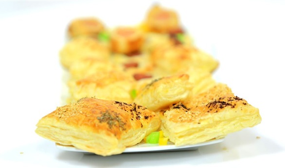 رشى الباف باسترى بالسماق والزعتر والسمسم وحبة البركة وأدخلى مقبلات الباف باسترى الفرن لمدة 20 دقيقة حتى النضج وقدميها.