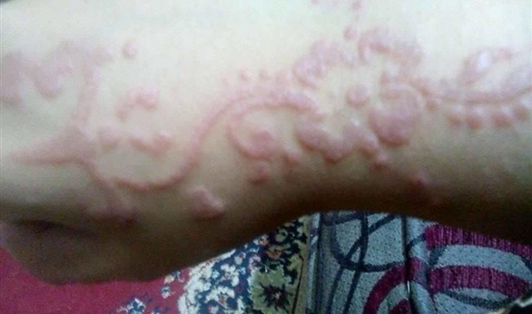 حذر الدكتور هانى الناظر رئيس المركز القوى للبحوث سابقا وأستاذ الجلدية من خطورة الرسم بالحنة على الجلد، وتأثيرها فى إصابة الجلد بالأمراض والالتهابات، ونشر الناظر صورة لإحدى الحالات، وقد أصيبت بمرض جلدى صعب من جراء الرسم بالحنة.