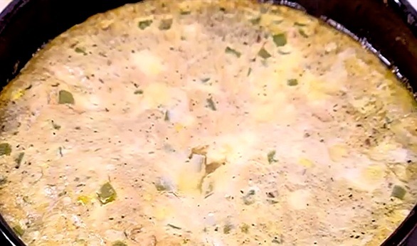 ارفعى الطاسة من على النار وضعى على الخليط البيض وقلبى جيدا