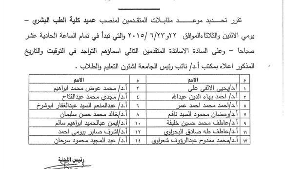 وحصل "صدى البلد" على نسخه من أسماء الأساتذة المتقدمين لمنصاب عمداء الكليات.