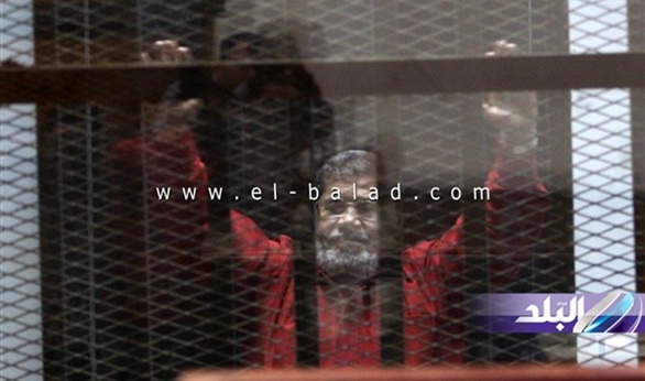 ظهر الرئيس المعزول محمد مرسي في جلسة اليوم بمحاكمته وآخرين في قضية "التخابر مع قطر" مرتديا البدلة الحمراء، وهي المرأة الأولى له بعد الحكم بإعدامه في قضية "اقتحام السجون".