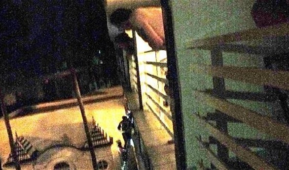 استيقظ آرتشي كامبيل (55 عاماً) وشريكه مورين كينين (51 عاماً) في ساعات الصباح الباكرة بعد أن سمعا صوت صراخ شديد وهرعا إلى شرفة غرفتهما في الطابق الرابع من الفندق الذي كانا ينزلان فيه، ليشاهدا رجلاً وقد تدلت قدماه من الأعلى.