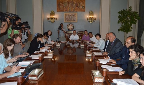 "شكري" يلتقي بالمراسلين الأجانب.. وينتقد نقلهم أرقام خاطئة عن شهداء الجيش في سيناء