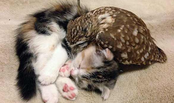 بالصور.. قصة حب غريبة تجمع بين قطة وبومة