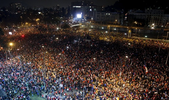 واحتشدت الجماهير في الشوارع والميادين والحانات عقب فوز المنتخب الوطني لتشيلي بأول لقب كبير يوم السبت بعد التغلب على الارجنتين 4-1 بركلات الترجيح عقب تعادلهما بدون أهداف.