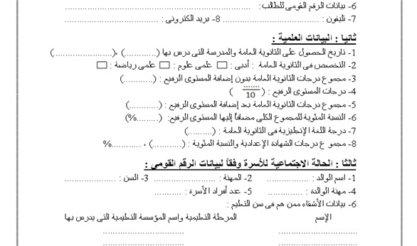 واضاف ان سحب استمارات اليوم وغدا، طبقًا للحروف الأبجدي التي تبدأ بها أسماء الطلاب، وهم حروف ا، ب، ت، ث،