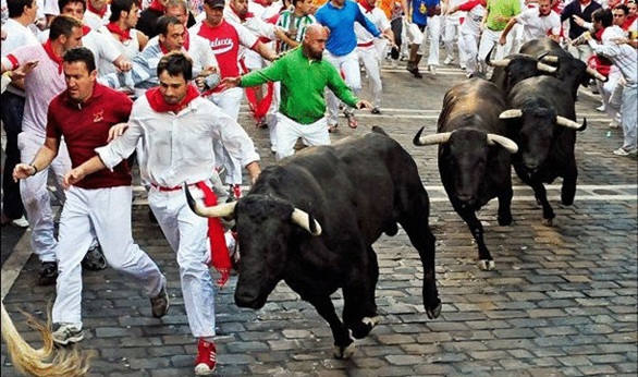 نطح وإصابات مع بدء مهرجان الثيران في مدينة بامبلونا الاسبانية