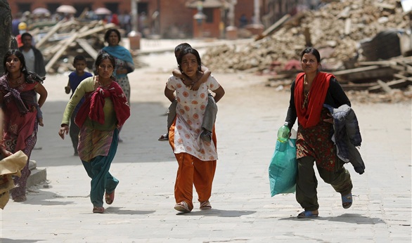 وزلزال نيبال بلغت قوته 7.9 درجة على مقياس ريختر وعلى عمق 15 كيلومترا حسب الماسح الجيولوجي الأمريكي.