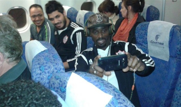 حرص البوركينى محمد كوفى مدافع الفريق الاول لنادي الزمالك على التقاط صور سيلفى اثناء تواجده بالطائرة مع زميله على جبر، حيث غادرت القاهرة بعثة الفريق الابيض متجهة إلى جنوب إفريقيا استعدادا لخوض مباراة أورلاندو في الجولة الثانية لمباريات دور الثمانية للكونفدرالية، والمقرر لها يوم السبت المقبل.