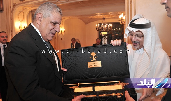 وفي نهاية الحفل أهدى السفير قطان مجسما لمفتاح الكعبة المشرفة لمحلب.