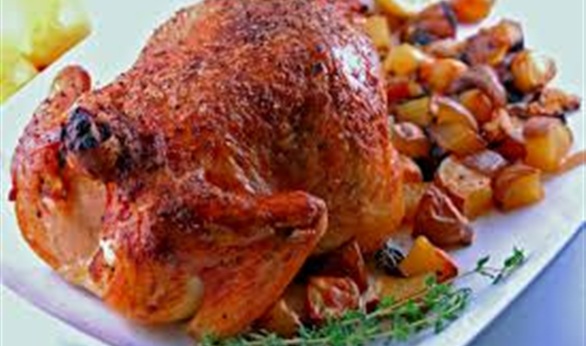 -نفتح الفرخة من الضهر ونعمل فتحات فيها وندهنها بصلصة وملح