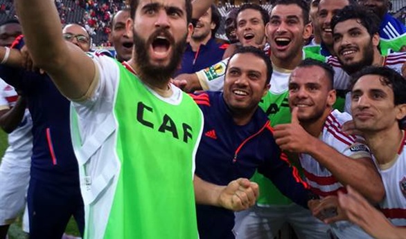 حرص لاعبو الزمالك على التقاط صورة "سيلفى " عقب انتهاء لقاء الفريق الابيض مع اورلاندو بايرست بملعب موبيلا بمدينة نيلسبورت الجنوب افريقية بالفوز وتصدر المجموعة الثانية.
