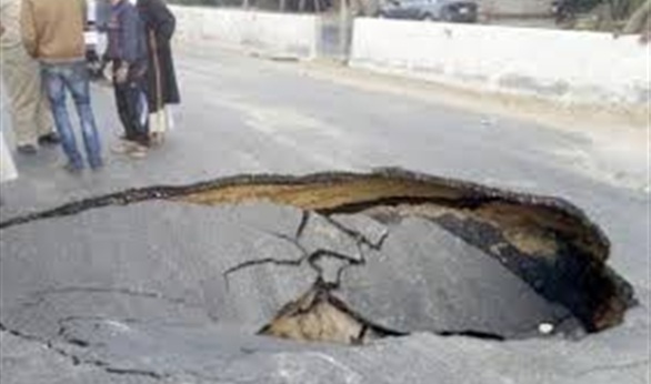 هبوط أرضى بسبب انحدار خط صرف صحي بالمنصورة