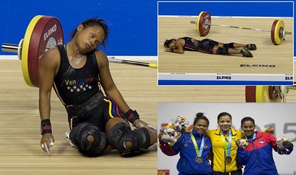 ولحسن الحظ لم تسقط الأثقال على الفنزويلية، كما أنها لم تتعرض إلى أي إصابة في قدمها.