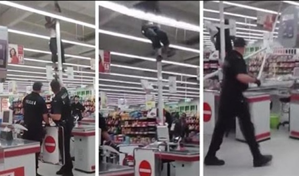 تداول نشطاء عللى موقع التواصل الإجتماعى "يوتيوب" مقطع فيديو، يظهر لص قام بمحاولة غبية لتسلق عمود الضوء والتشبث بأحد المصابيح في أحد المتاجر في محاولة للهروب من رجال الشرطة .