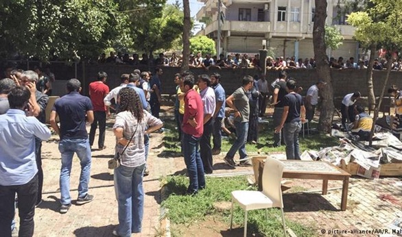 ووقع التفجير بعد سلسلة من الهجمات على حزب الشعوب الديمقراطي المؤيد للأكراد قبيل الانتخابات التي جرت في السابع من يونيو حزيران بينها تفجيرات صغيران استهدفا تجمعا سياسيا بمدينة ديار بكر وألقى الحزب بالمسؤولية عنها على متعاطفين مع الدولة الإسلامية.