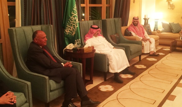 وأجرى شكري مشاورات مع الأمير محمد بن نايف وبمشاركة وحضور الأمير محمد بن سلمان، ولي ولي العهد والنائب الثاني لرئيس مجلس الوزراء ووزير الدفاع، وعادل الجبير، وزير الخارجية، ورئيس الاستخبارات السعودية خالد الحميدان، والوزير مساعد العبيان، وزير الدولة بمجلس الوزراء، ولفيف من كبار المسئولين وسفير مصر بالرياض وسفير المملكة بالقاهرة.
