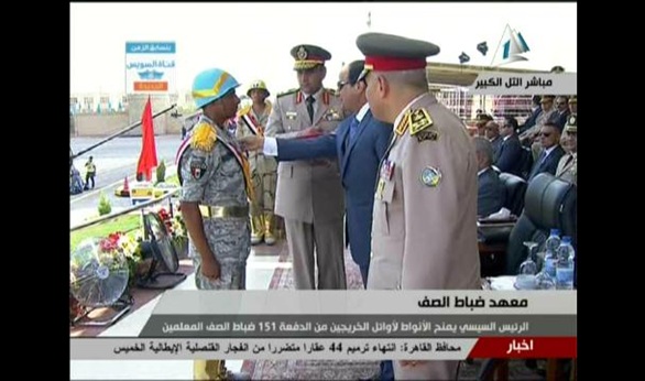 جاء ذلك خلال مراسم الاحتفال بتخريج الدفعة 151 من معهد ضباط صف القوات المسلحة، دفعة «الشهيد رقيب أول محمود محمد جاد يونس»، بحضور الرئيس عبد الفتاح السيسي، ورئيس الوزراء المهندس ابراهيم محلب، ووزير الدفاع الفريق أول صدقي صبحي، وعدد من الوزراء والمحافظين، وكبار رجال الدولة، وكبار قادة القوات المسلحة، وعدد من الملحقين العسكريين المعتمدين بالقاهرة، وأسر الخريجين.