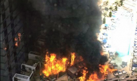 أكدت صحيفة الديلي ميل، أن المئات من السياح اضطروا إلى الفرار من فندق كوزموبوليتان، وقد بدأ الحريق في الطابق الرابع عشر من الفندق في المنطقة المجاورة لحمام السباحة، وتم استدعاء 35 سيارة إطفاء ومائة شرطي للمشاركة في إخماد الحريق الهائل.