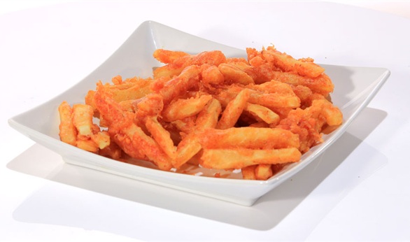 أضيفي القليل من الماء فوق الدقيق ليصبح خليطا وضعي البطاطس في الخليط وتبليها بها واقليها في زيت غزير وقدميه.