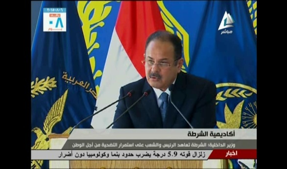 وتابع وزير الداخلية القول: "إن الشرطة تعاهد الرئيس والشعب على استمرار التضحية من أجل الوطن".