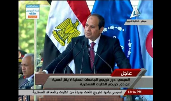 قال الرئيس عبد الفتاح السيسي، إننا سنحتفل معا خلال أيام قليلة بافتتاح قناة السويس الجديدة، شريان جديد للملاحة الدولية، وهو انجاز مبهر نجح المصريون في تحقيقه بعقولهم وسواعدهم وأموالهم، وقدموا من خلاله هدية للعالم، مساهمة في إثراء حركة التجارة الدولية.