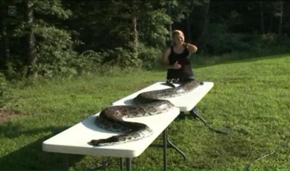 تخلص سكان محليون من قرى أمريكية من أفعى ضخمة مسئولة عن اختفاء الحيوانات الصغيرة في أرياف ولاية ميزوري الأمريكية وهي من نوع الثعبان البورمي، والتي يبلغ طولها أكثر من 4 أمتار.