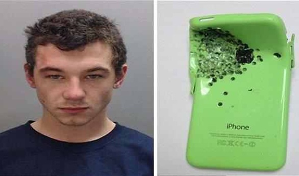 تعرض دانيال كندي (25 عاماً) لإطلاق النار بعد شجار مع ريان دوجان (19 عاماً) والذي كان أحد أعضاء عصابة ترعب السكان في منطقة وادينز بمدينة تشيشاير البريطانية، إلا أن إصابة كيندي لم تودي بحياته إذ تلقى هاتفه من نوع آي فون الطلقة وحماه من الموت المحتم.