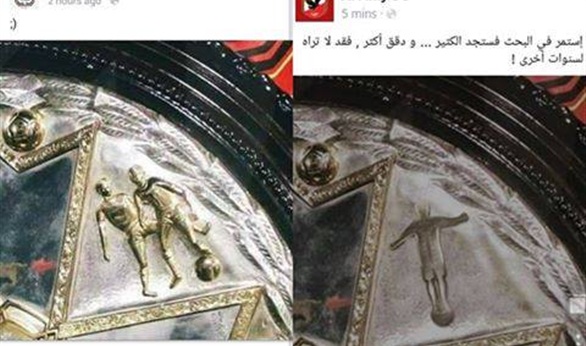وبدأت الأزمة لدى قيام الموقع الرسمي للنادى الأبيض بنشر صورة لدرع الدورى الممتاز ظهر خلالها حازم إمام، وهو يعتدى على رمضان صبحى بالشلوت خلال مباراة القمة ما أثار حفيظة القائمين على الموقع الرسمي للأهلى ونشر صورة للدرع مرسوم عليه وقفة رمضان صبحى على الكرة فى نفس اللقاء.