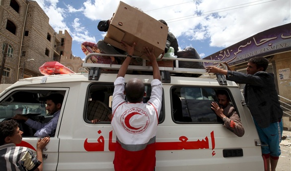 وكانت طائرة تابعة لمنظمة الصليب الأحمرالدولية قد وصلت صنعاء وعليها 23 طنا من الأدوية والمساعدات الطبية .