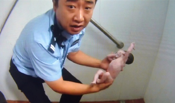 بالصور.. شرطي ينقذ رضيعة من الموت في دورة مياه عمومية بالصين