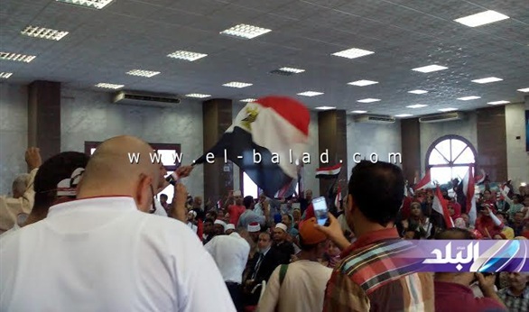 تجمع ظهر اليوم الخميس العشرات من اهالى محافظة المنوفية بقاعة المؤتمرات باستاد شبين الكوم الرياضى احتفالا بافتتاح قناة السويس الجديدة.