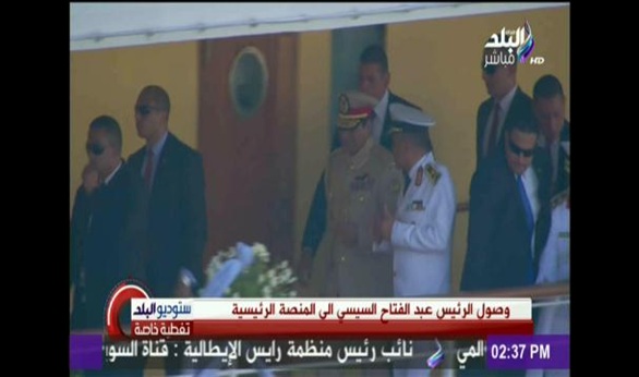وصل الرئيس عبد الفتاح السيسى إلى المنصة الرئيسية لقناة السويس الجديدة، وذلك بعدما أبحر على يخت "محروسة" مرتديا الزى العسكرى ومصطحبا معه ممثلين لفئات الشعب.