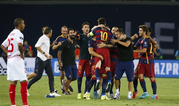 توج فريق برشلونة الاسباني بقيادة مدربه الشاب لويس انريكي ببطولة كأس السوبر الاوروبية للمرة الخامسة فى تاريخه بعد فوزه على منافسه اشبيلية الاسباني بخمسة أهداف مقابل أربعة وذلك باللقاء الذى أقيم مساء اليوم الثلاثاء بالعاصمة الجورجية تبليسي.