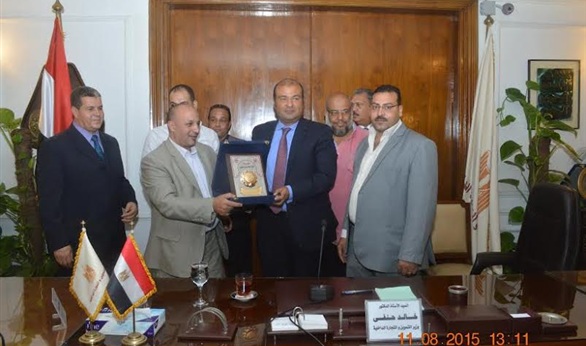 وفي نهاية الاجتماع أهدي أعضاء نقابة البقالين التموينيين الدكتور خالد حنفي وزير التموين والتجارة الداخلية درع النقابة تقديرا لجهوده ونجاح منظومة السلع التموينية.