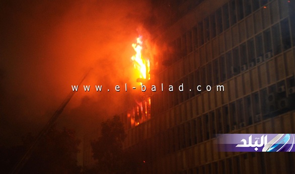 - النيران التهمت سنترال العتبة حتى الطابق الخامس
