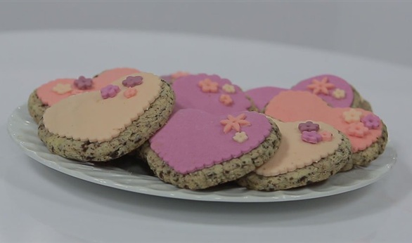 "سالي فؤاد" تقدم طريقة عمل البسكويت الموكا بزينة القلوب