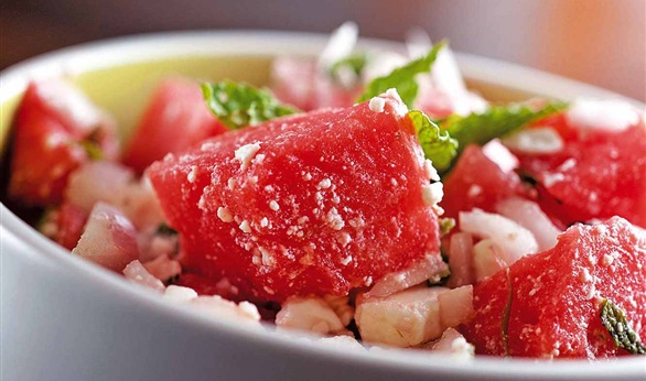 مع شدة حرارة الطقس يمكنك أن تقدمي لأسرتك سلطة خفيفة وشهية، إليك سلطة بطيخ مع الجبن للشيف أسامة السيد.