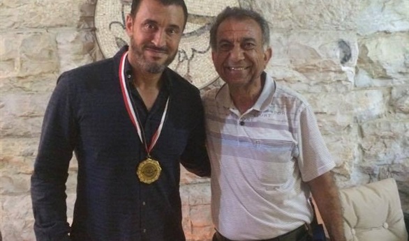 وظهر كاظم من خلال صور نشرها علي صفحته بموقع التواصل الاجتماعي " فيسبوك" خلال تسليم الاذاعي لطيف جاسم القلادة له.