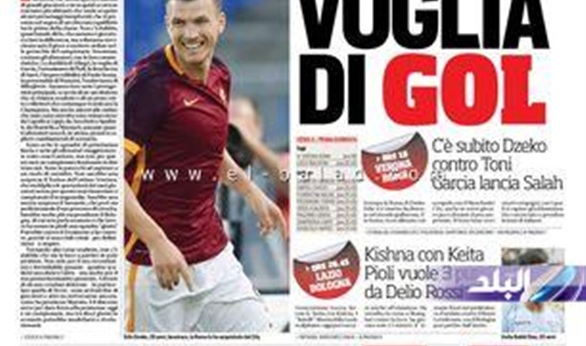 وضعت الصحف في صدر صفحاتها استعدادات الفرق لانطلاق البطولة مشيرة الى الدفع بمحمد صلاح أساسياً في قائمة روما في مباراة اليوم، بالإضافة الى استعداد إدين دزيكو لبدء التسجيل في الدوري الايطالي عبر مباراة فيرونا.