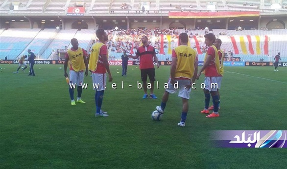 بالصور.. لاعبو الأهلي يؤدون تدريبات الأحماء قبل مواجهة الترجي