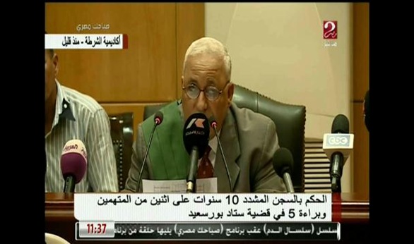 قضت محكمة جنايات بورسعيد برئاسة المستشار محمد السعيد الشربينى، المنعقدة بأكاديمية الشرطة، اليوم الأحد، بالسجن المشدد 10 سنوات لمتهم وبراءة 5 آخرين وتأييد الحكم بالاعدام لمتهم هارب، فى إعادة إجراءات محاكمتهم، بعد أن ضبطوا عقب إصدار أحكام غيابية فى حقهم، فى القضية المعروفة إعلاميا بـ"مذبحة بورسعيد".