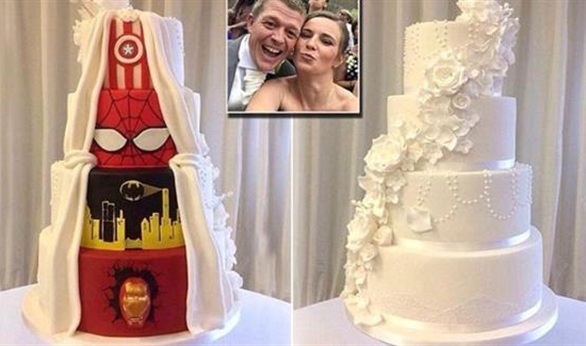 للوهلة الأولى، يبدو قالب الحلوى المزخرف بالورود في الصورة الأولى تقليدياً لكن الصورة الثانية تثير التساؤلات حول سبب وجود صورة للشخصية الكرتونية "سبيادر مان" على الجهة الأخرى من القالب.