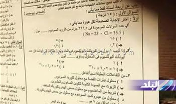 نشرت صفحة شاومينج بيغشش ثانوية عامة ، صورة لورقة أسئلة قيل إنها تخص امتحان الدور الثاني لمادة الكيمياء ، الذي يؤديه طلاب الثانوية العامة الآن داخل اللجان.