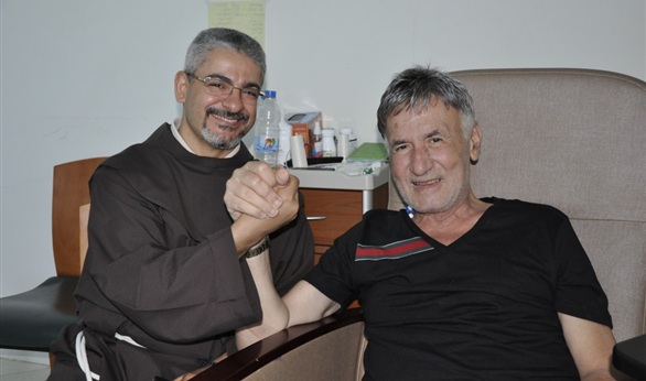 زار الأب بطرس دانيال رئيس المركز الكاثوليكى الفنان عزت أبو عوف فى مستشفى الدفاع الجوى واطمأن على حالته الصحية .