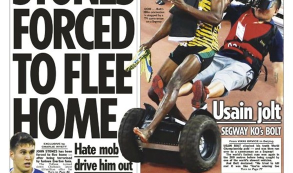 صحيفة "صن سبورت": "ستونز يجبر على الهروب من المنزل، جماهير إيفرتون الغاضبة تهاجم منزل ستونز وتجبره على الهرب، دي بروين الذهبي: اللاعب سيتقاضى أعلى راتب في السيتي بعد التوقيع مع الفريق، حرب بيراهينو بين ويست بروميتش وتوتنهام".
