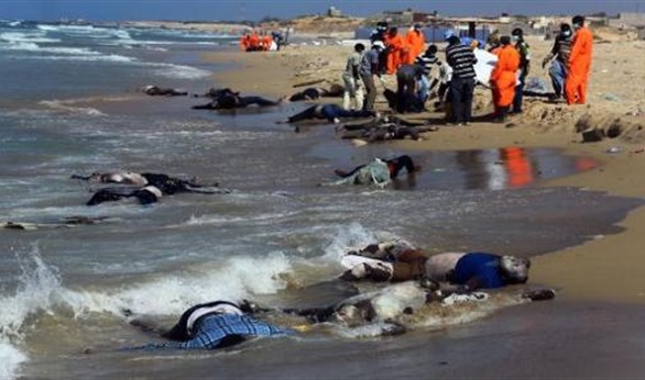 انتشلت السلطات الليبية 82 جثة جرفتها الأمواج نحو الشاطئ بعد غرق قارب مكتظ بالمهاجرين في البحر المتوسط وأعلنت أن مئة آخرين في عداد المفقودين تخشى موتهم.