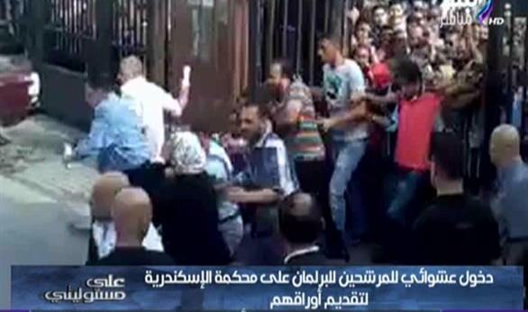 عرض الإعلامي أحمد موسى فيديو لتدافع وهرولة مجموعة من مرشحي البرلمان داخل محكمة الإسكندرية لتقديم أوراقهم للترشح للبرلمان.